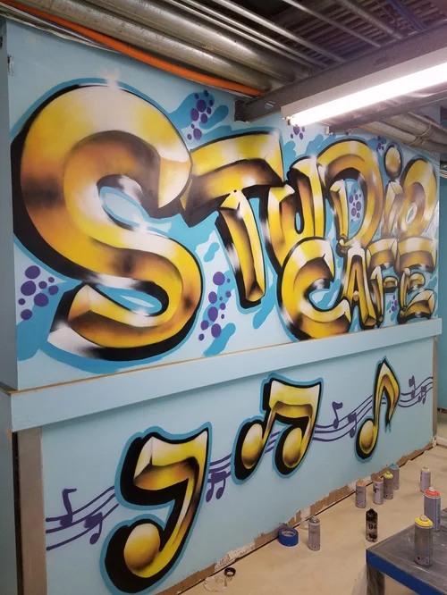 The Marriott hotel wanted a special place for their employees to park. They had a bunch of different things they wanted to say with the wall. I convinced them something big and simple would have the biggest effect. I really love the way the diamond came out in this one.